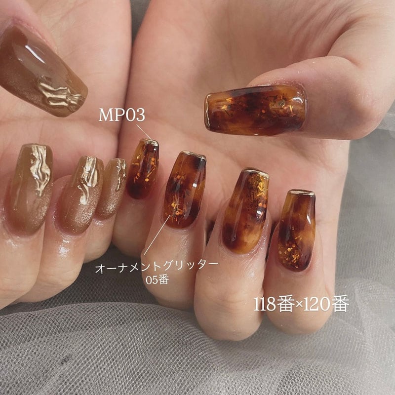 まるで秋の雫を閉じ込めたような、深みと透明感が魅力。さらっと塗れてムラになりにくく、ニュアンスアートやぼかしも思い通り。