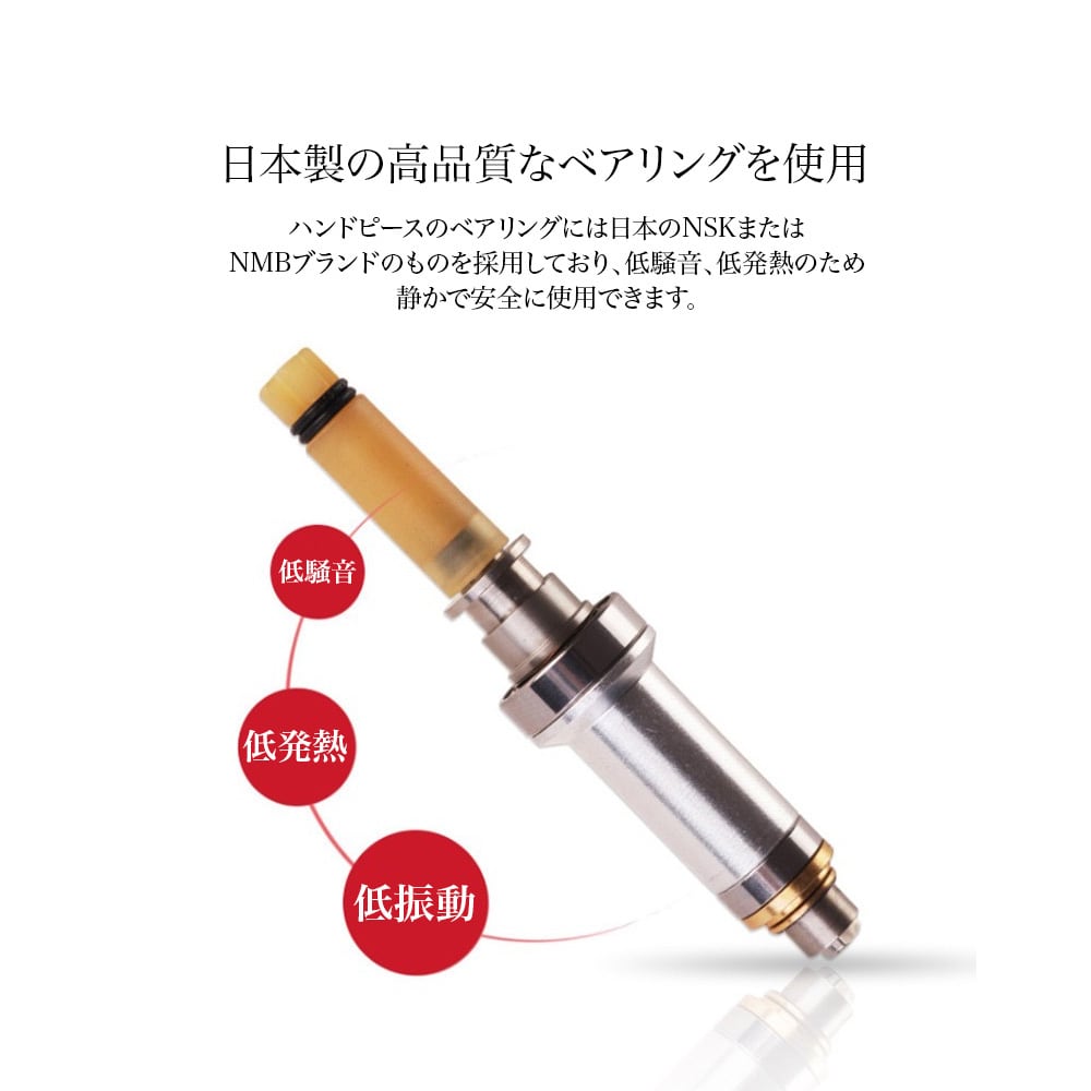 さらに、低騒音設計により、静かな環境で安心してお使いいただけます。熱や振動も少ないため、長時間の使用でも手や爪に優しく、大手ネイルサロンチェーン店様やスクール様にもご愛用いただいています。