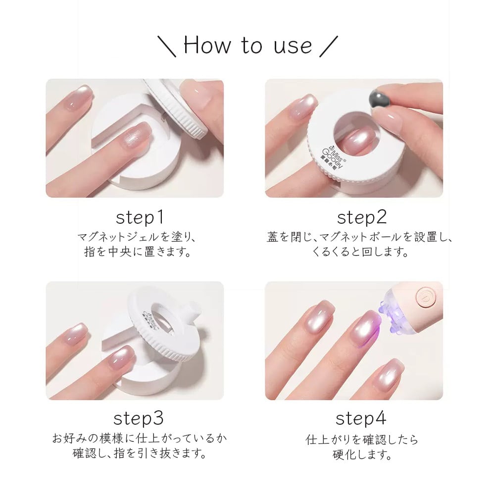 蓋をしてくるくると回すだけで簡単にビー玉ネイルができます。