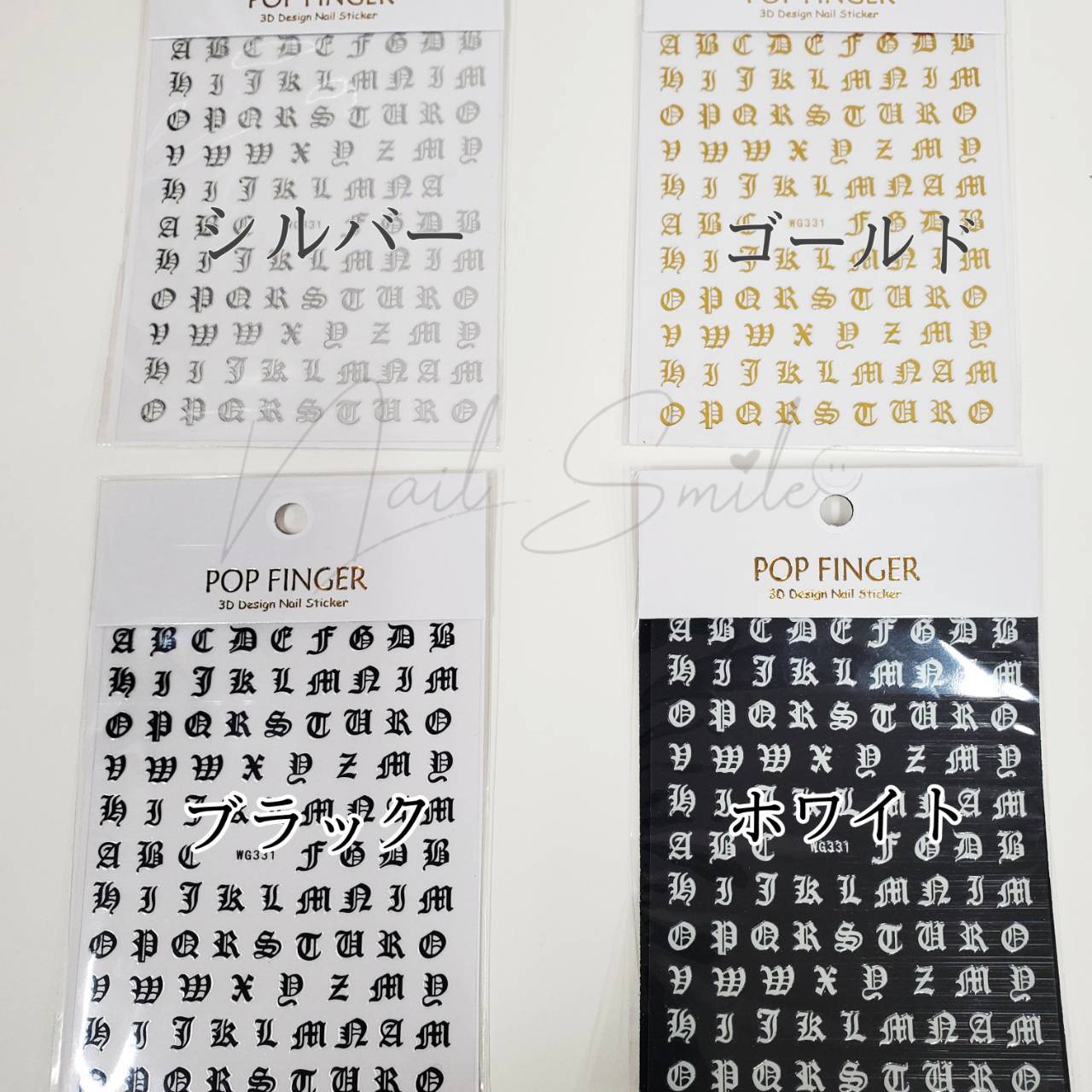 ブラックレター ネイル イニシャル アルファベット ハンドメイド デコ レジン 英文字 英語 推 ブラック シルバー 黒 白 ブラック ホワイト ネイルシール