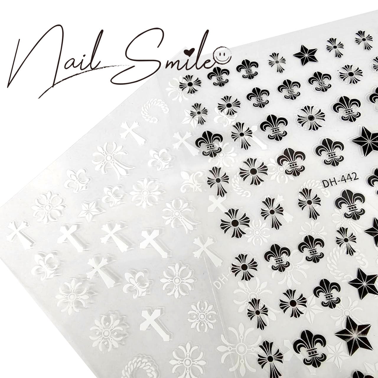 ネイル パーツ ネイルシール ハンドメイド レジン デコ クロム風 黒 白 ブラック ホワイト 十字架 百合の紋章 ユリの紋章 クロス